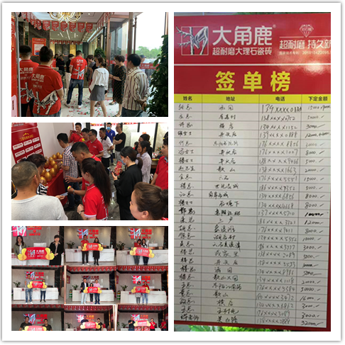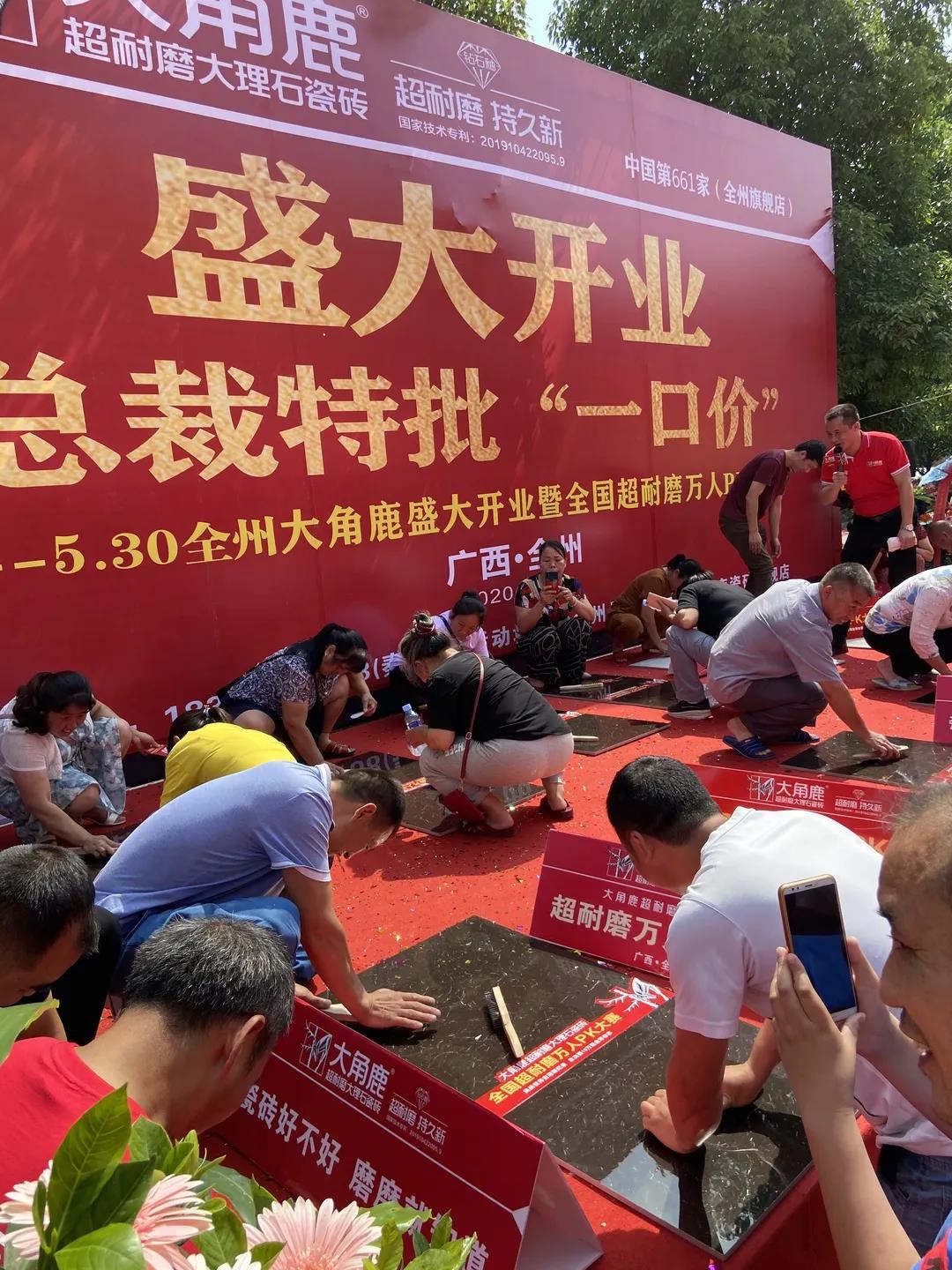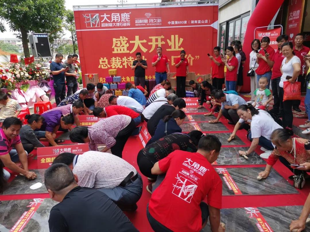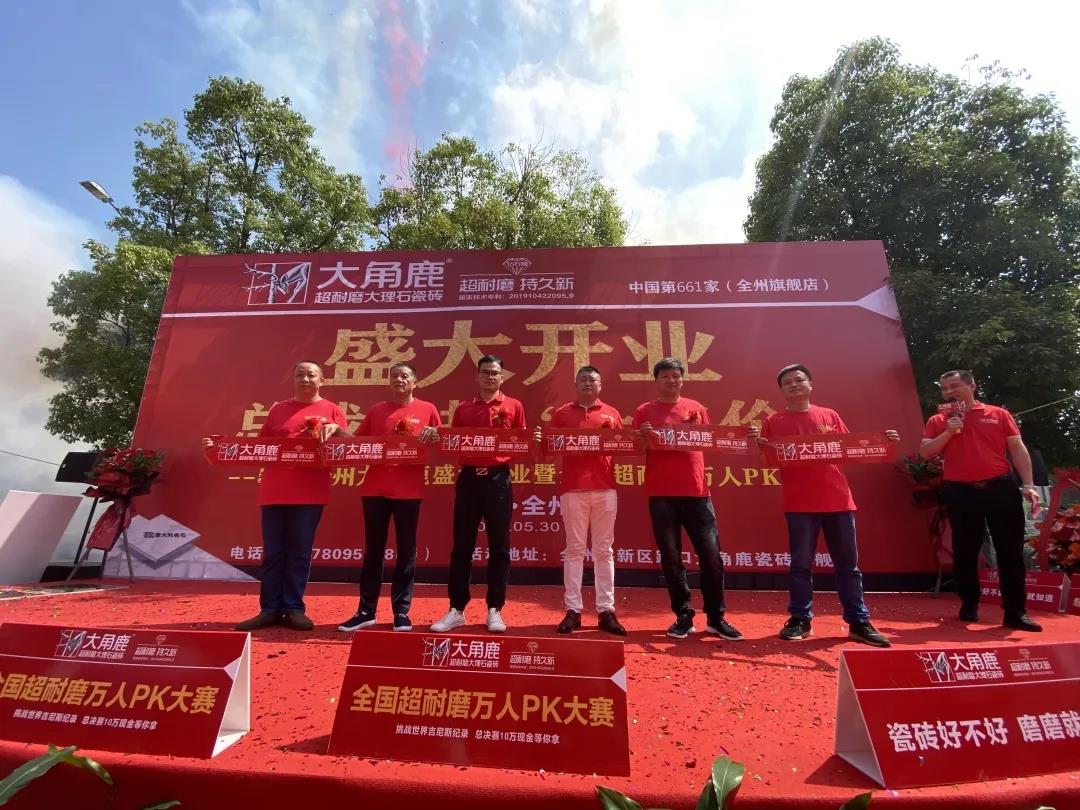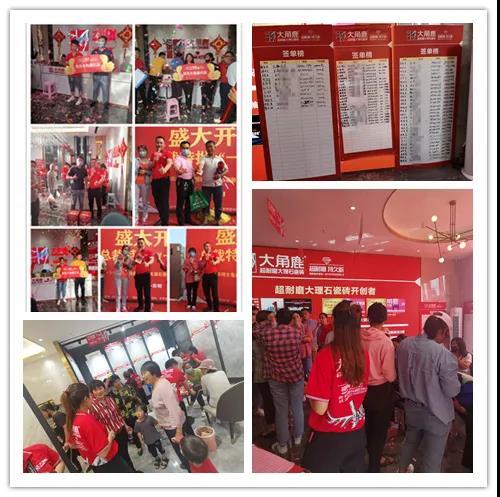 5月10日-5月30日,大角鹿超耐磨大理石瓷砖中国第629家山东东明店、第661家广西全州店、第668家浙江东阳店、第689家广东茂名店、第693家湖南蓝山店、第695家山东德州店六店陆续盛大开业。同时,全国超耐磨万人PK大赛各站点也如期开赛,让全国各地消费者亲自体验到“大角鹿,超耐磨、持久新”并引发抢购热潮。