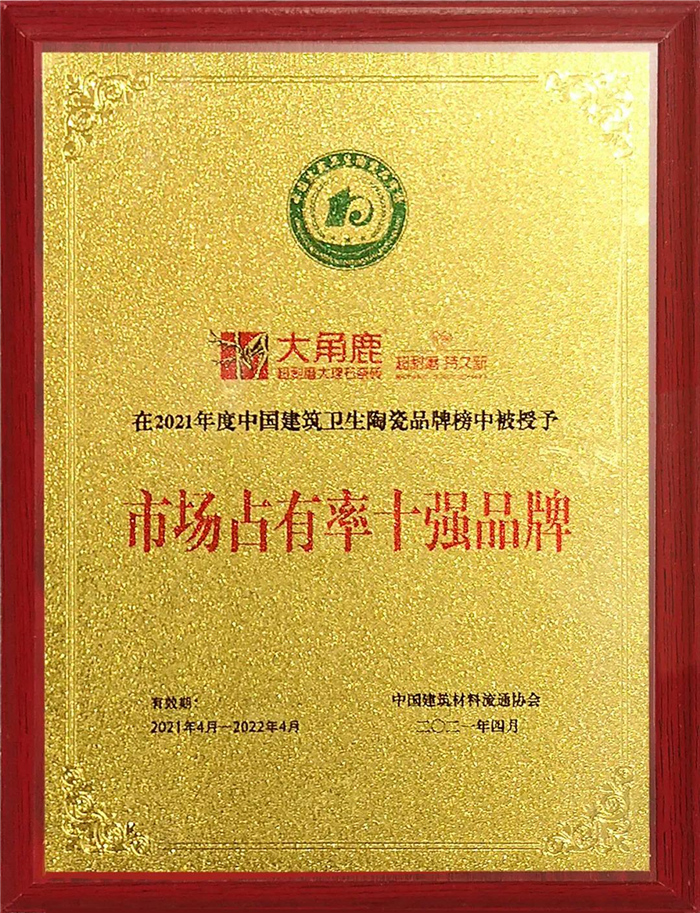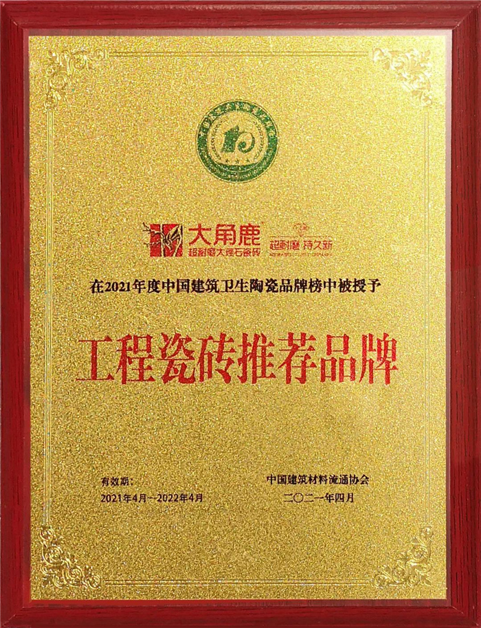 大角鹿,出口德国、意大利等68个国家,全国1300多家专卖店,瓷砖十大品牌,2017年入选达沃斯论坛指定选用瓷砖品牌,产品被广泛应用于新西兰希尔顿酒店、吉隆坡万豪酒店、科隆坡香格里拉酒店、日本DANS LE COEUR酒店、马来西亚喜来登酒店、宝马中国总部等高档装修项目,让亿万家庭使用上高品质的超耐磨大理石瓷砖。