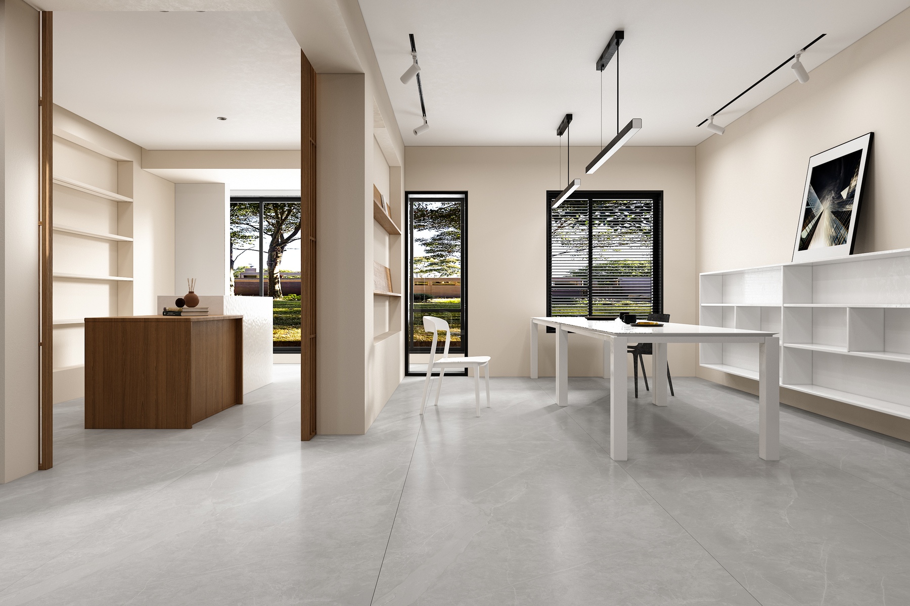 相比灰色的冷淡,雅白的这样干净优雅的地砖,用在厨房的墙面,再搭配上白色的墙面砖,整个空间会显得更加明亮干净大方。