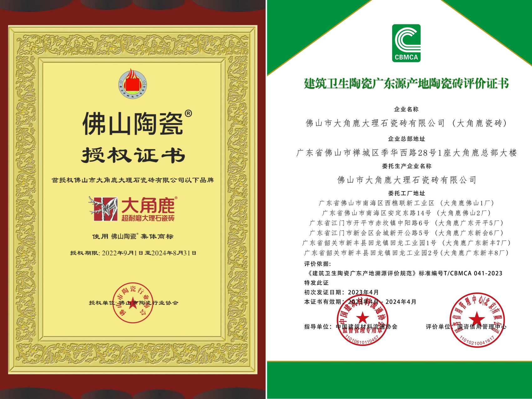 “世界陶瓷看中国,中国陶瓷看佛山,佛山陶瓷闻名全球。”大角鹿上榜首批“佛山陶瓷”商标授权品牌,获“广东原产地陶瓷砖认证”,并凭借其六大生产基地卓越的制造实力,向广大消费者展现了正宗广东砖的高标准水平。