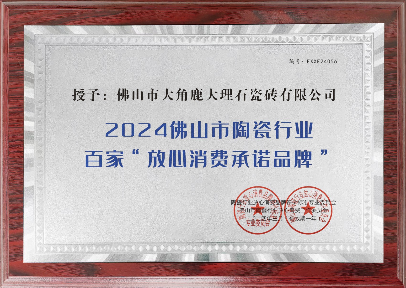3月15日,由陶瓷行业放心消费品牌评价标准专业委员会、佛山市陶瓷行业放心消费工作委员会联合主办的2024佛山市陶瓷行业315放心消费承诺品牌活动在佛山隆重举行。活动现场,凭借引领全球的超耐磨技术和过硬品质,大角鹿被授予“2024佛山市陶瓷行业百家放心消费承诺品牌”。