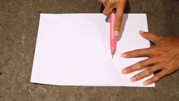 我们在瓷砖上放10张A4纸,用锋利的戒刀通过划破纸张用力切割至瓷砖表面。