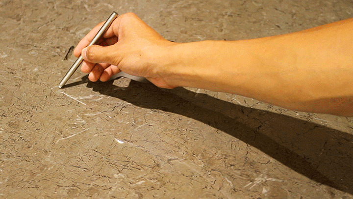 大角鹿瓷砖板面坚韧,使用十字形螺丝刀快速用力地在大角鹿瓷砖的表面划过,金属与板面相碰,伴随着刺耳的刮擦声,火星四溅。