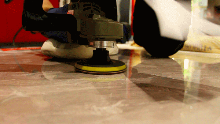 我们利用500目金刚砂专业耐磨机对瓷砖表面进行打磨,伴随着机器高速转动,PC酱在现场能感受到机器运转带来的风感,同时还能闻到机器高强度摩擦砖后产生的特殊异味。