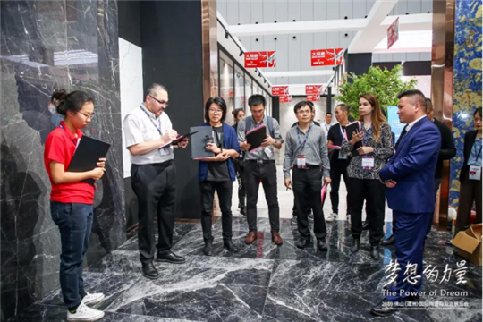 大角鹿超耐磨大理石瓷砖吸引了外国建筑师Daniela Meira等设计大咖们前来参观。